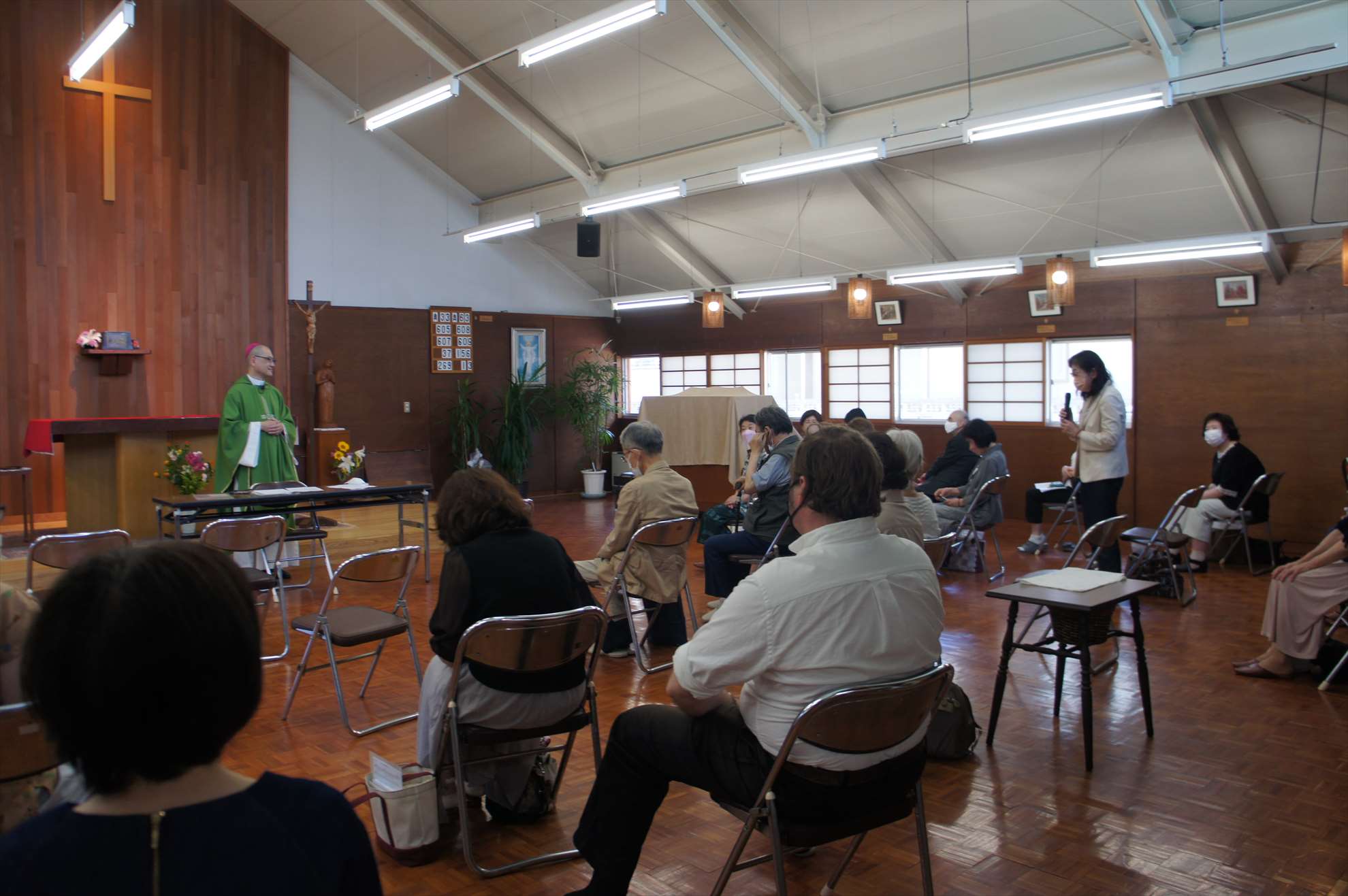 ミサの後は、ほとんどの方が残って意見交換会を行いました。まず、わたしの方から、寺尾教会として作成してくださった教区の宣教司牧方針についての分かち合いのまとめについてコメントしました。分かち合いのための質問は、「…について何ができますか?」というものが多かったのですが、寺尾教会からは多くのポジティブなアイディアが寄せられました。同時に、無理なことを押しつけるのも良くないという意見もあり、どちらも大切にしつつ、誰もがそれぞれの環境で参加できる教会共同体として歩みを進めていただけたらとお話ししました。意見交換では、普段感じていること、自分の信仰、人生について等幅広く時間いっぱいまで分かち合ってくださいました。司教の訪問をダシにしてこういう分かち合いの時を持つことができるのはいいことですね。