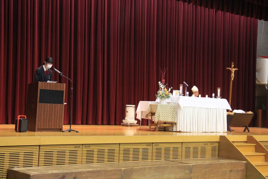 本日、新潟清心女子中学・高等学校にてクリスマスの集いが行われました。毎年二部構成で行われるこの行事は、第一部で祈りの集いを、第二部でクリスマスにちなんだ様々なプログラムが行われます。昨年まで第一部は集会祭儀が行われていましたが、今年は久しぶりにミサが行われ、チャプレンの岡神父と二人で司式しました。入祭の時に司式者が幼子イエス像を捧持して入堂し、祭壇脇の飼い葉桶に安置します。また共同祈願は各学年代表の生徒の皆さんが作成されたもので、イエスの誕生の意味を掘り下げた、とても意義深い祈りが捧げられました。