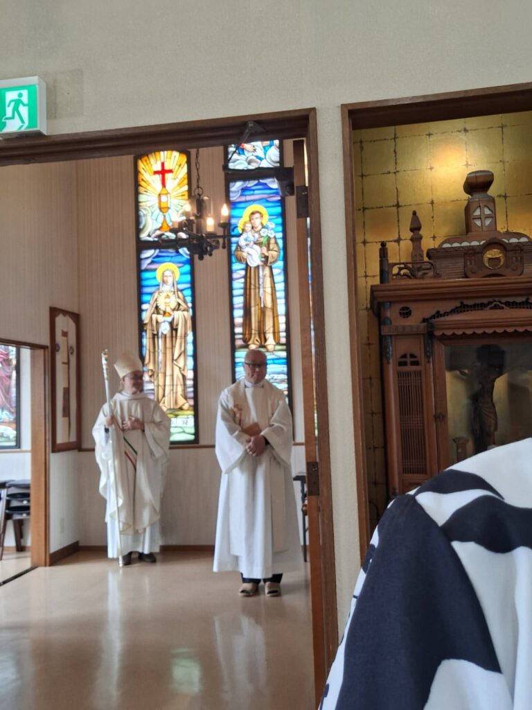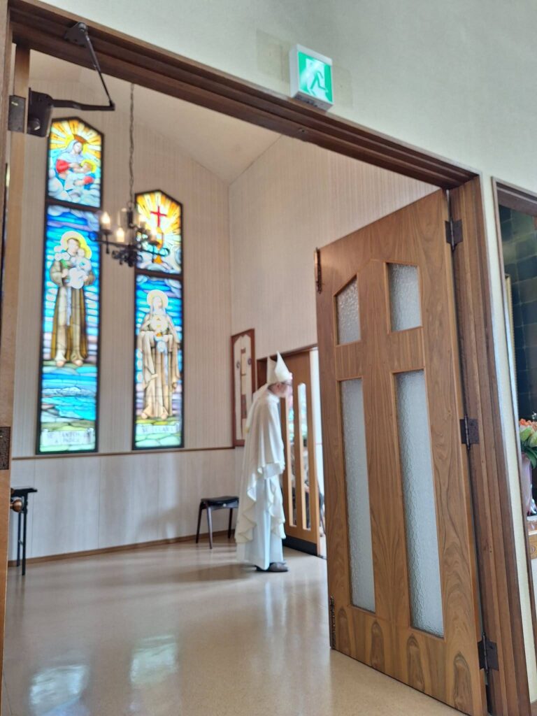 ミサの後は私の方から20分ほど新潟教区の近況について教会現勢を用いてお話しし、その後意見交換しました。柏崎教会では、ここ数年、集会祭儀の後に分かち合いを行うことが増えたとそうです。互いのことを知り、交わりを深める場となっているとのことで、素晴らしいですね。その後、信徒会館に場所を移して昼食。そして、小教区評議会が行われました。会議の中で、私の方から、他の教会で行われている取り組みについて紹介する時間を取ってくださり、お話しさせていただきました。教区中の教会を回るのは司教だけですので、学んだことを分かち合えるのはありがたいです。