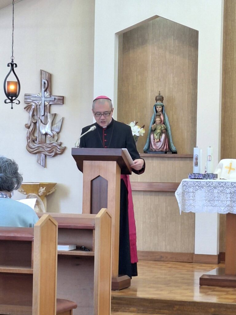 午前9時から復活節第3主日のミサが行われ、うれしいことに小さな子どもの皆さんが何名も参加されました。お説教で「神様は目に見えないけど、いつも一緒にいるよ。困っている時、悲しいとき、必ずとなりで一緒にいてくれるよ」と子どもたちにお話ししました。