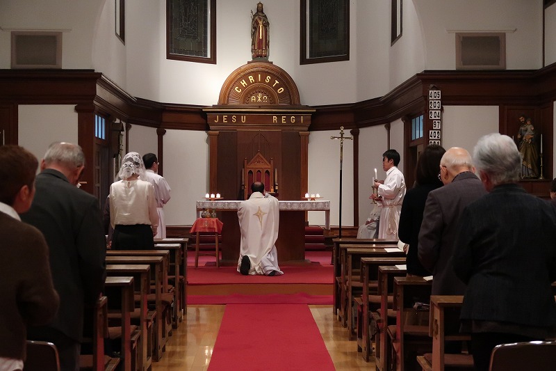 聖木曜日〈主の晩さんの夕べのミサ〉 投稿日2019/04/262019/04/26投稿者事務局 2019年4月18日午後7時から新潟教会で聖木曜日のミサが行われました。 ミサは聖なる油を受け取る式からはじまり、説教に続き洗足式が行われ、拝領祈願の後、聖体安置式で終わりました。