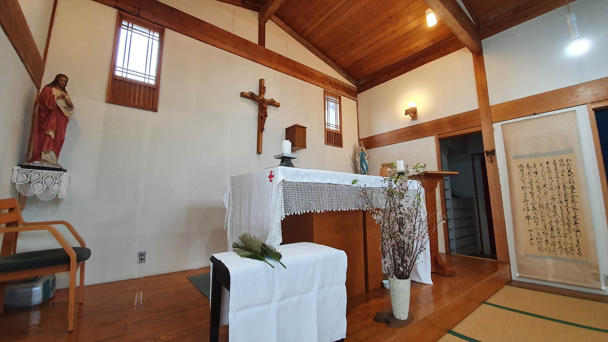 午後には長井教会を訪問いたしました。長井教会は米沢から北へ40分の距離にあり、同じくマルティヌス神父様が主人司祭を務めてくださっています。小さく、とても落ち着いた雰囲気の畳の聖堂をいただいた教会に、ヴェトナム出身の方を含む元気な国際共同体が集います。ミサの後、長井名物ときわ餅とヴェトナムからのココナッツペーパーをいただきながら長井教会について教えていただきました。ありがとうございました。