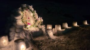 昨日と今日、山形地区の新庄教会で雪の聖母祭が行われました。新庄教会は雪の聖母を守護者としていただいており、毎年2月の日曜日に雪の聖母をお祝いしています。土曜日の夜、ロザリオを唱え、教会の庭にロザリオを模して作られたかまくらにろうそくを灯していきます。同時にマリア像を聖堂からかまくらに運び、安置。祈りを捧げ、一人ひとり花とろうそくを捧げます。