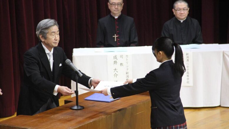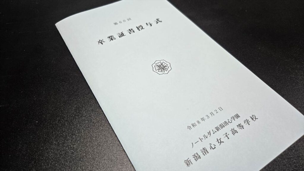 本日、新潟市西区の新潟清心高等学校の卒業式が行われました。今年の卒業式は第60回とのことです。人間でいえば還暦、学校としても大切な時となったのではないでしょうか。